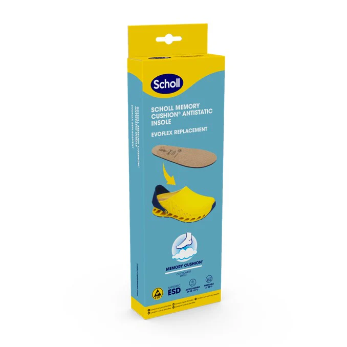 Mekani uložak sa Scholl Memory Cushion® tehnologijom raspoređuje pritisak stopala po cijelom đonu materijala.