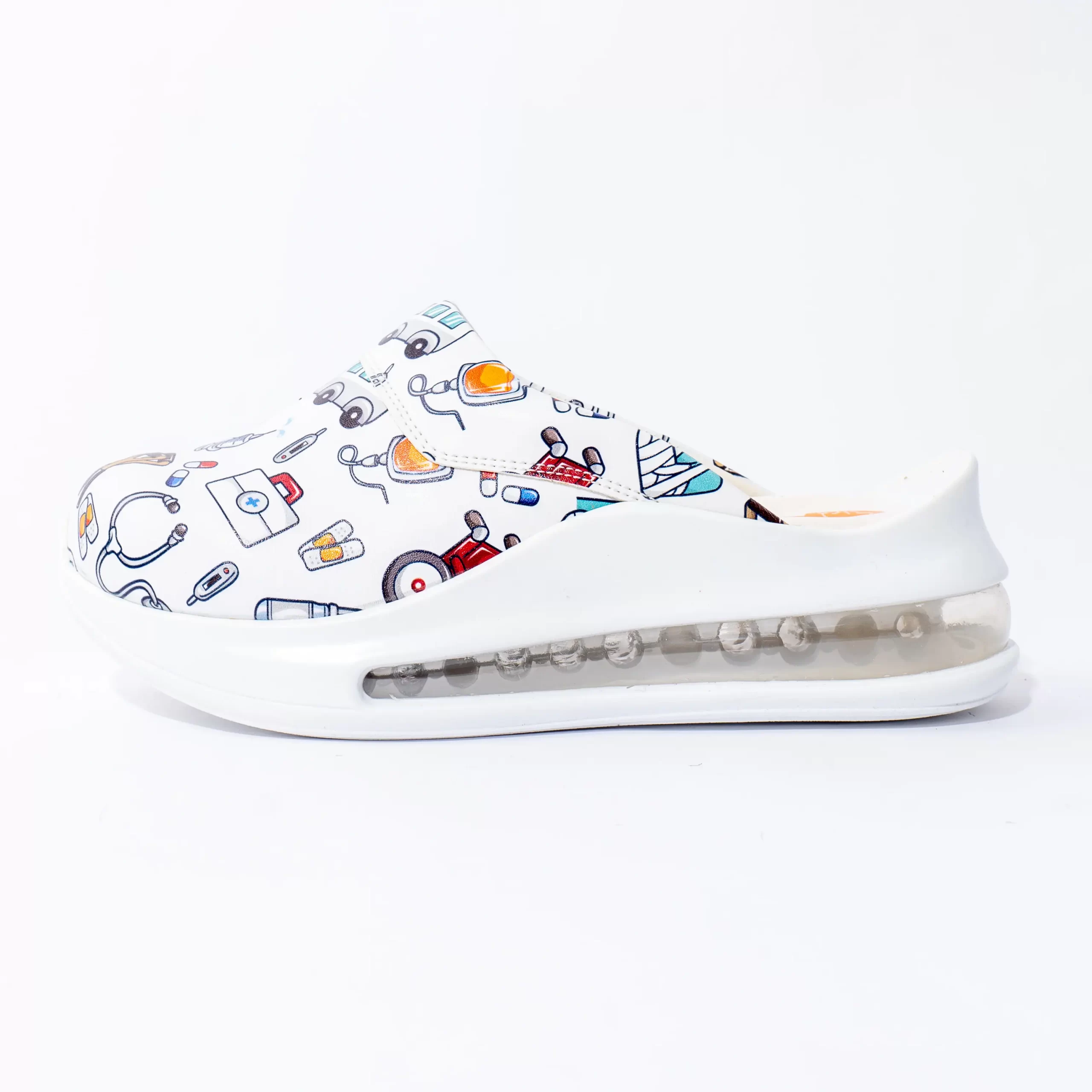Iako izgledaju veliko zbog visine đona, jako su lagane i ne umaraju stopala. Visina osnove je 5 cm. Unutrašnja struktura pruža udobnost stopalima tokom cijelog dana. Zahvaljujući posebnom obliku đona, klompe se ne kližu.